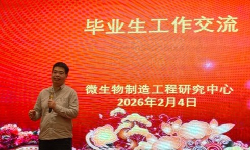 2026年02月04日,微生物制造工程研究中心年终庆典于在无锡同庆楼隆重举行。这次年会的举办凝聚着全体师生一年来的心血与付出,不仅是对研究中心在2025年取得成果的肯定,更是对全体师生辛苦付出的肯定,同时也是对研究中心未来发展的展望与期待。本次年会研究中心全体师生及近10位特邀博士毕业生欢聚一堂,以“总结·传承·启航”为主线,共叙科研硕果,表彰卓越先锋,展望未来发展。