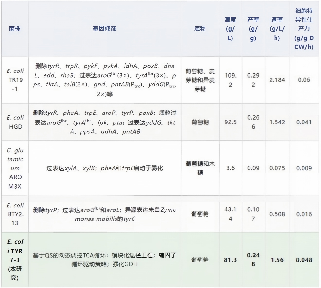 关键词:L-酪氨酸、代谢通量、动态调控、细胞特异性生产力、生物制造